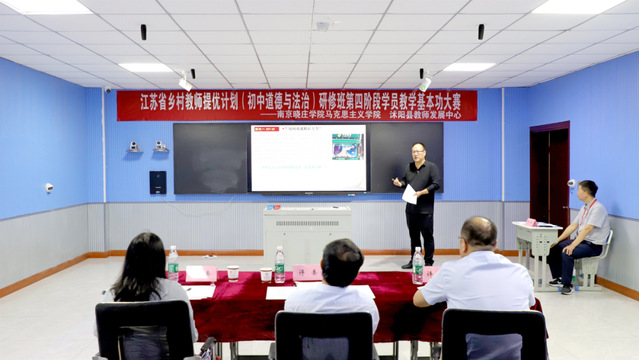 知行并进,以惠乡庠。6月28日至29日,江苏省乡村教师提优计划(初中道德与法治)研修班学员教学基本功大赛暨毕业典礼在沭阳县潼阳中学成功举行。本次活动由南京晓庄学院马克思主义学院主办、沭阳县教师发展中心协办、沭阳县潼阳中学承办,以“赋能乡村教育,振兴思政力量”为主题,通过“以赛促教、以训提能”的创新模式,为沭阳县50名乡村思政骨干教师搭建了专业成长的实践平台,谱写了新时代乡村教师队伍建设的崭新篇章。