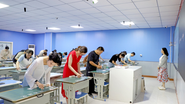 6月28日拉开帷幕的教学基本功大赛,是检验研修成果的“试金石”。大赛严格对标《江苏省基础教育青年教师教学基本功大赛规程》,设置专业知识与能力测试、粉笔字书写、教学设计与课件制作、即兴演讲、模拟课堂教学等五大环节,全面考察学员的核心素养。参赛教师以扎实的理论功底、创新的教学设计、生动的课堂演绎,展现了乡村教师队伍的专业风采。特别在模拟课堂环节,教师们将陶行知“教学做合一”理念融入道法课程,通过“红色文化情境创设”“乡土案例深度剖析”等特色设计,实现了知识传授与价值引领的有机统一。