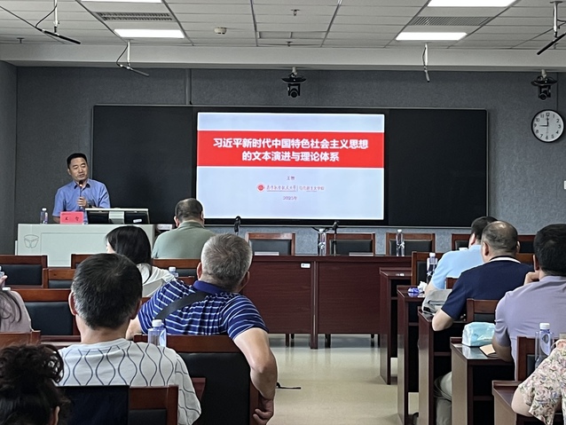 主旨报告环节,南京航空航天大学马克思主义学院院长王智教授围绕习近平新时代中国特色社会主义思想作系统解读,从文本演进与理论体系两个维度,结合历史源流、时代背景、历史地位、丰富内涵与实践指向等方面进行梳理,帮助与会教师进一步把握这一重要思想的科学体系与方法论,为课堂教学的深化提供了坚实支撑。课程建设交流中,我院陈红英教授分享国家一流课程建设经验,强调坚持理论联系实际、以问题为导向推进改革,突出课程知识体系的系统性、全面性、实践性与时代性,以高质量课程服务高质量人才培养。