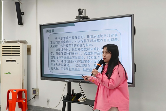 上午,规范推进汇报与指导,夯实实践成果。俞小敏主持启动实习汇报与分组交流。各小组聚焦教学实践、班级管理及身份转变,结合实习期间的照片等资料,生动形象地展示了在实习岗位上的所学所获。汇报后转入分组指导,指导教师针对“课堂把控”“学生沟通”等难题,结合经验靶向指导,助力实习生明晰改进方向,提升实践技能。通过这一环节,实习生们不仅对实习期间的收获与不足有了更清晰的认识,也为后续的职业发展积累了宝贵经验。