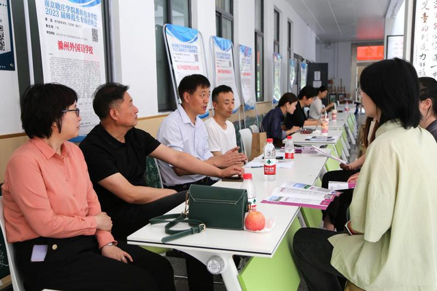 在招生与就业工作处指导下,精心组织,细致筹备,严格把关,招聘会共邀请了南京外国语学校雨花国际学校、南京书人实验学校、南京外国语学校方山分校、南京实验国际学校、滁州外国语学校、南京贝齐心教育培训中心、无锡梁溪区乐名教育培训中心、南京星途教育科技有限公司等25家用人单位,提供教育领域就业岗位百余个,吸引了数百名毕业生到场了解情况、投递简历。